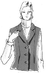 Requirements: Jacket: Sizes 8-12 45" fabric: 2 3/8 yds. 60" fabric - 1 7/8 yds. 45" lining 1 5/8 yds. Sizes 14-18 45" fabric 2 3/4 yds. 60" fabric - 2 1/4 yds. 45" lining 2 1/4 yds. Sleeveless Jacket: Sizes 8-14 45" fabric 2 1/8 yds. 60" fabric - 1 1/2 yds. Sizes 16-18 45" fabric 2 3/8 yds. 60" fabric - 1 3/4 yds. |