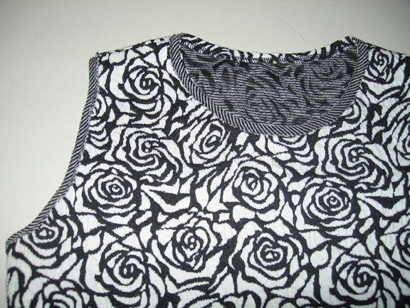 | Black and white continues as a strong color play in Resort and Spring collections...here a knit and the beautiful drape of the washable and lightweight Summer Faux Crepe and Crepe Print all coordinate. Notice the marvelous knit selvages on the Rose Print Knit that beautifully bind the neckline and armscye of this knit tunic top. | |||||||||||||||||||||||||||||||||||||||||||||||